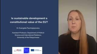 Dr. Evangelia Psychogiopoulou, Assistant Professor at the Department of Political Science and International Relations of the University of the Peloponnese, explains whether sustainable development is a constitutional value of the EU. See: https://youtu.be/lUSyQCPKwFU?si=moEGMrUCh0sOYMI_